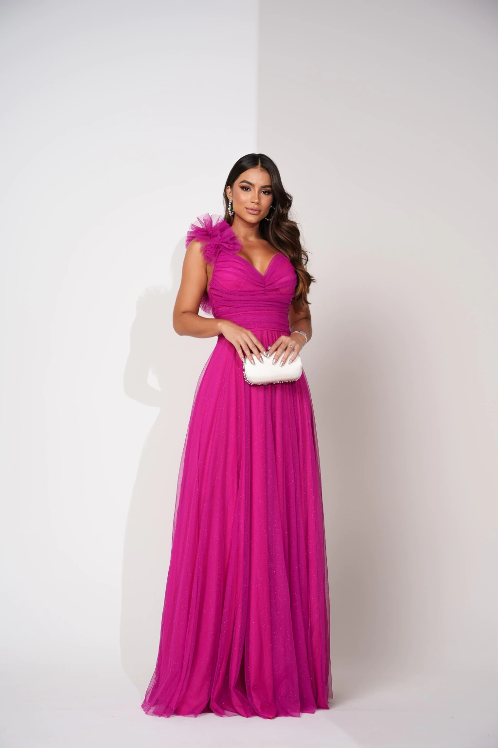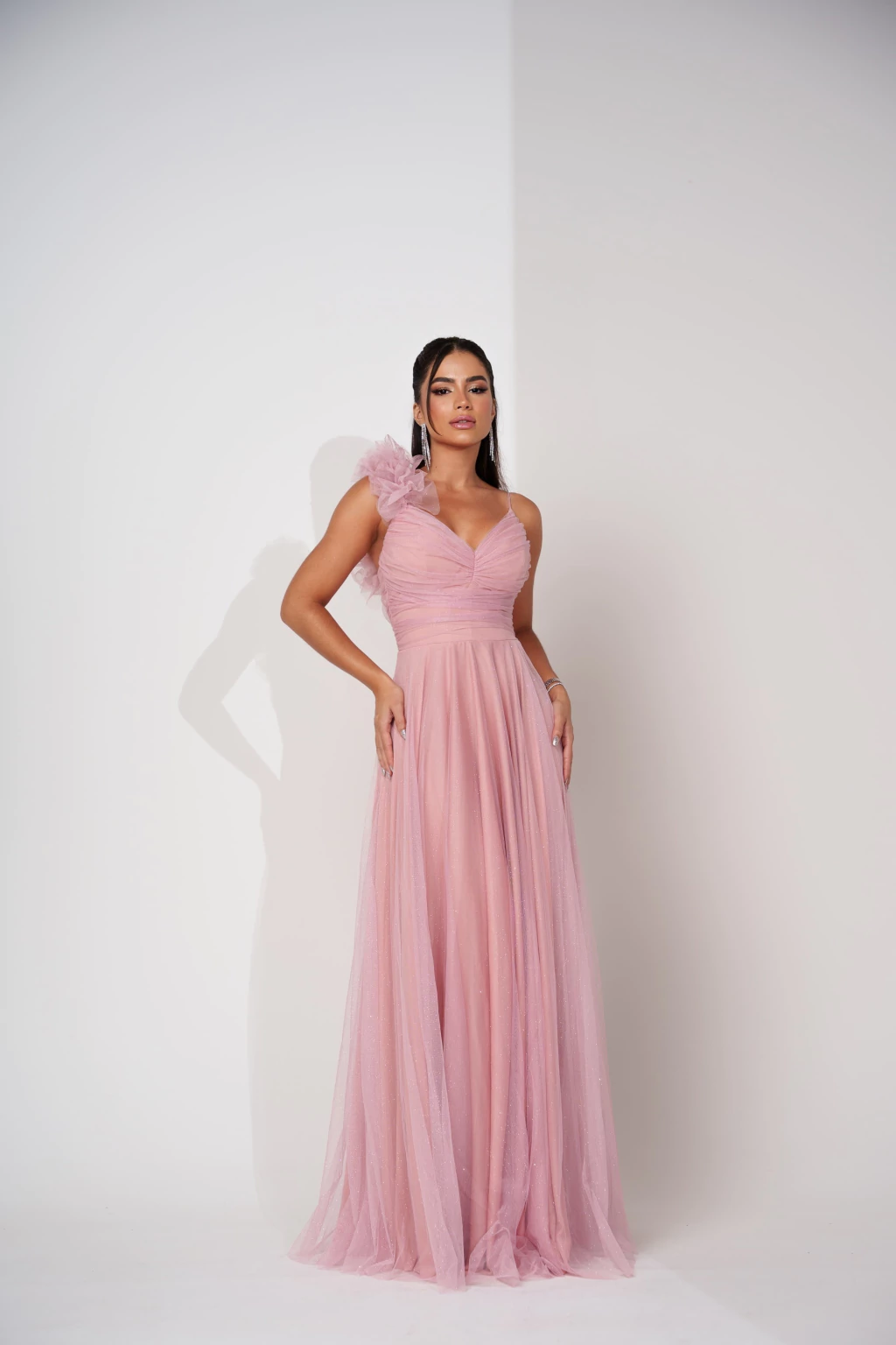 O Vestido Panamá é a escolha ideal para quem busca sofisticação em cada detalhe. Este vestido luxuoso, confeccionado em micro tule com brilho, é perfeito para madrinhas, formandas e convidadas em eventos especiais. Sua modelagem impecável proporciona um caimento perfeito, garantindo um visual impactante e repleto de glamour.